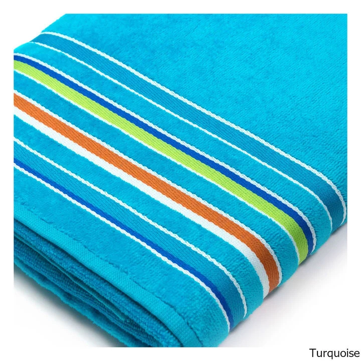 Ideal for the beach, pool or park, this towel features soft touch, terry velour cotton combined with a fancy bright Jacquard border.