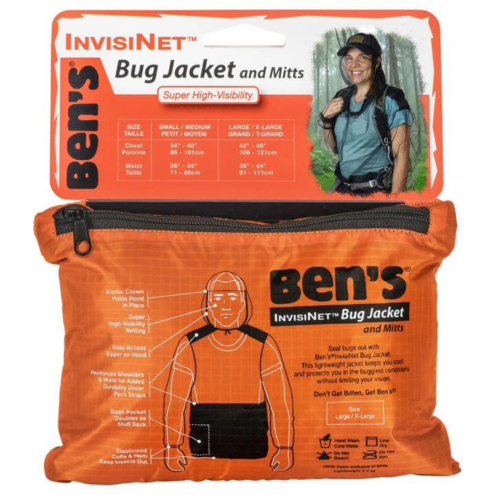 Protect your arms, hands, head and torso from swarms of insects with Ben’s® InvisiNet Bug Jacket & Mittens. Made with the highest visibility mosquito netting on the market, this mesh jacket seals bugs out without impeding your vision, so you can keep hiking, gardening, fishing or hunting in peace.