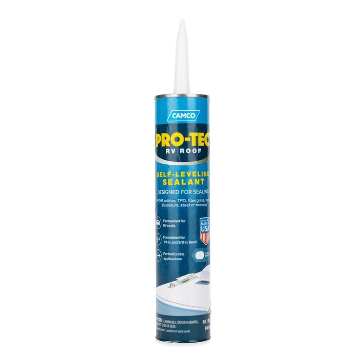 Create a strong seal along your RV’s roof edges, vent pipes and air vents with Camco’s® Self-Leveling Roof Sealant. It’s designed for sealing EPDM rubber, TPO, fiberglass, wood, aluminum, steel or masonry. The sealant is easy to apply and intended for horizontal applications.