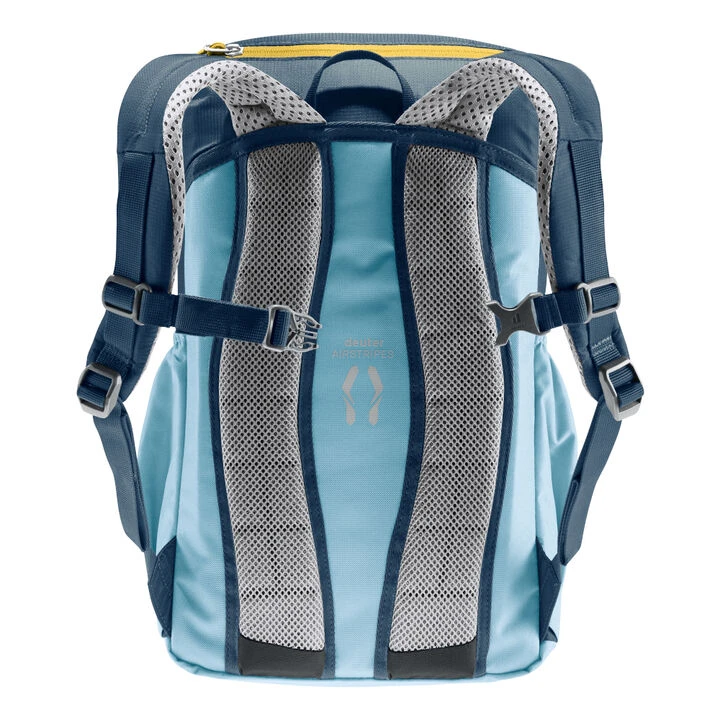 The Junior features Deuter’s® proven Airstripes back system for effective ventilation. The S-shaped shoulder straps with Soft-Edge finish make it comfortable to carry and the sternum strap keeps the pack securely in place, even when running hard. In addition to a spacious main compartment, it has a stretch stash pocket on the front and stretch side pockets for a whole host of items. The extra-tough, PFC-free recycled fabric (using thirteen 0.5-liter PET bottles for each pack) makes this Green Button-certified, bluesign® product a practical companion for all their explorations in the natural world.