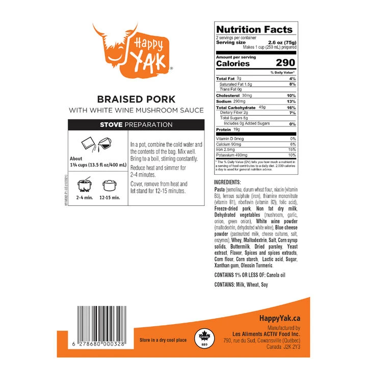 Preparation: In a pot, combine cold water and contents of bag. Mix well. Bring to boil, sitrring constantly. Reduce heat and simmer 2-4 minutes. Cover, remove from heat and let stand 12-15 minutes