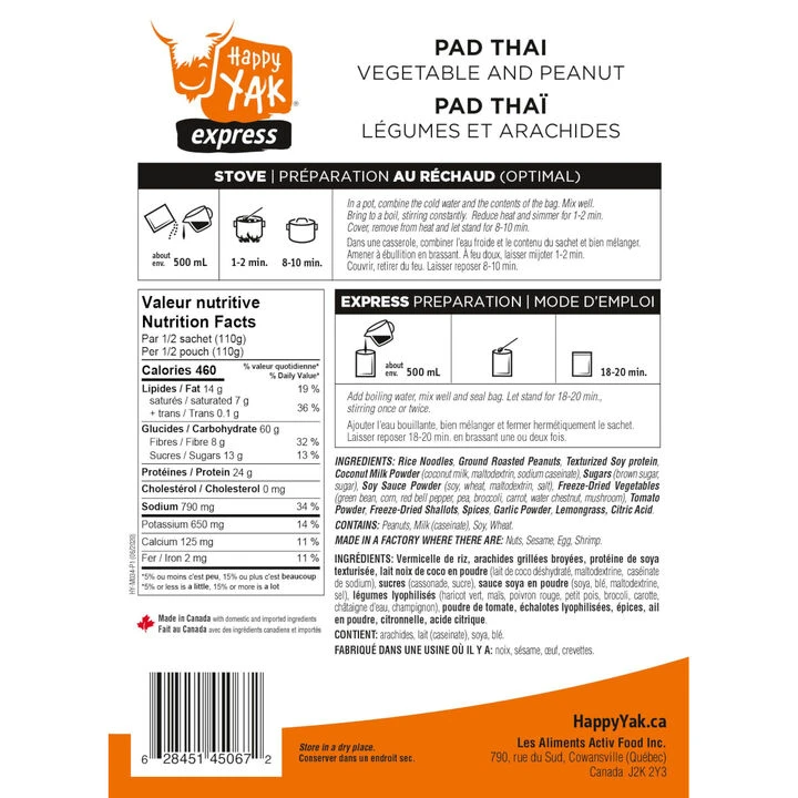 Happy Yak’s® Asian-inspired Pad Thai is prepared with tasty pieces of vegetables, rice noodles and a creamy peanut sauce. This best seller balances flavors that are bittersweet and spicy, with a hint salt, to create a bold personality.