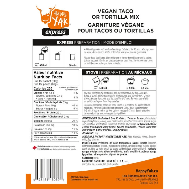 Looking for a convenient taste of Mexican cuisine? Happy Yakยฎ Vegetarian Taco or
