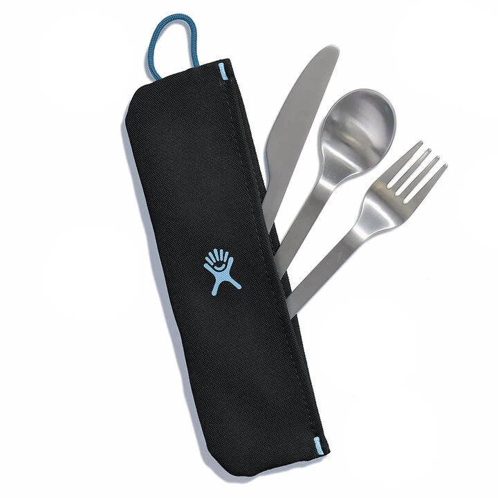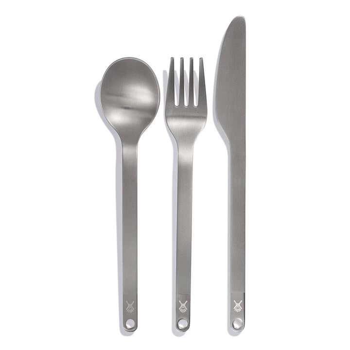 Hydro Flask’sยฎ durable flatware set with 18/8 pro-grade stainless steel is ready for mealtime anywhere, while the carry sleeve and stackable design makes storage and travel a breeze.