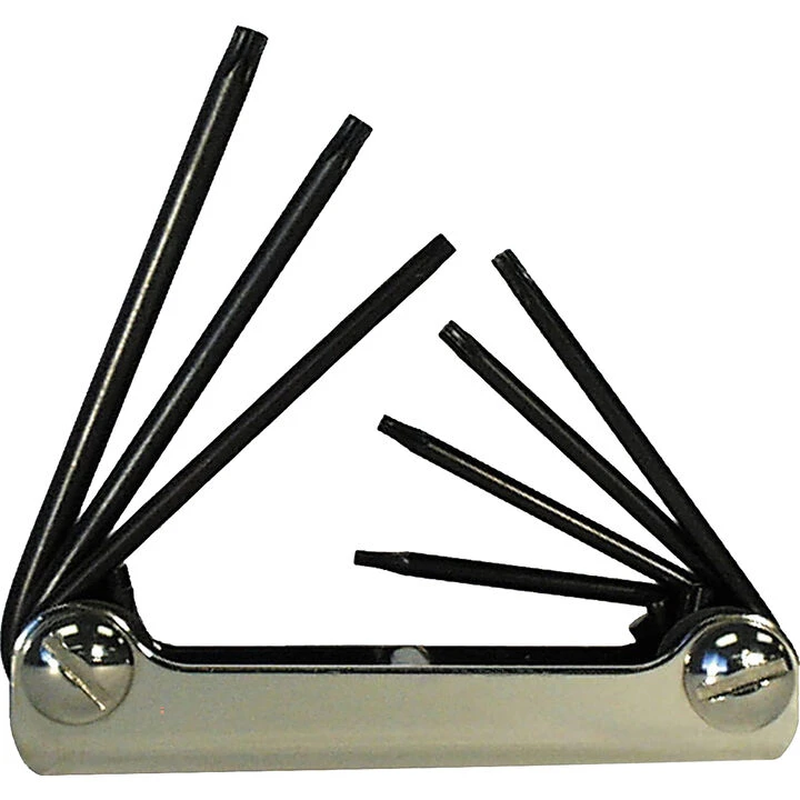 The Klein Tools® Folding Torx® Set fits easily into a pocket or tool box and helps eliminate lost key problems. Hex ends are square-cut for a secure full-depth fit. This design also provides maximum contact with the hex socket to prevent slippage and stripping of the socket.