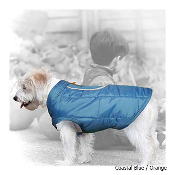 Help Fido brave those chilly New England months in this reversible, quilted shell.