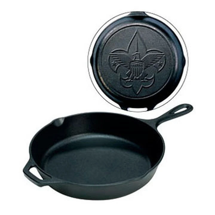Display this proudly or satisfy your patrol with some woodsy fare straight from the open fire. The Boy Scouts of America custom engraved fleur-de-lis skillet is seasoned, and ready to use.