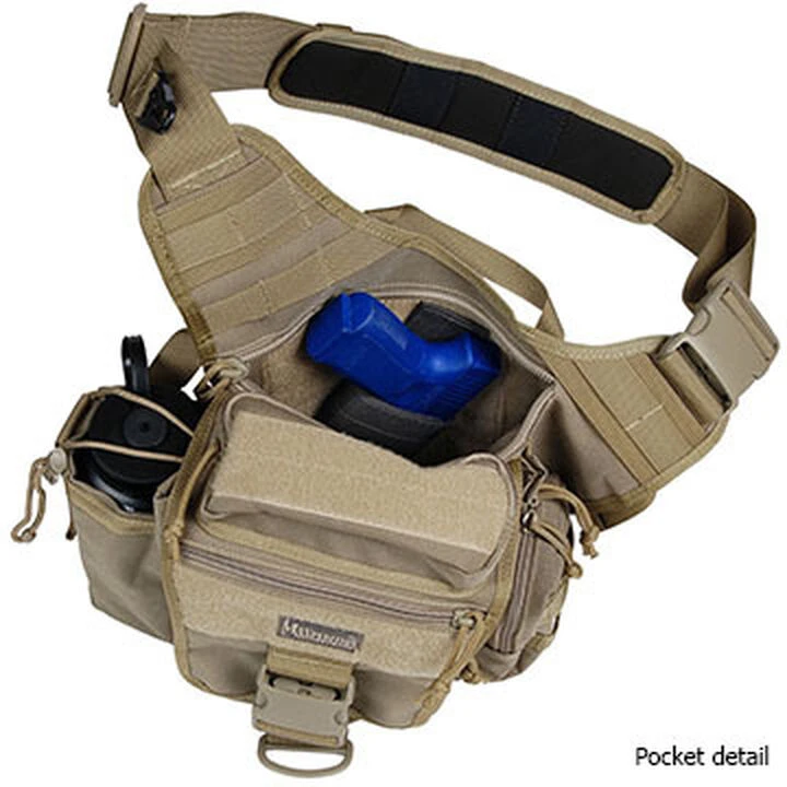 Purposefully designed, the multi-functional Jumbo has a quick release buckle and tuck-in flap for immediate access to multiple pockets and dividers, a spacious rear compartment with hook-and-loop interior for CCW, a paracord cinch pouch fitted for 32 oz. (1 Liter) water bottle or radio, and a quick-release ergonomic shoulder and waist strap for fluent mobility.
