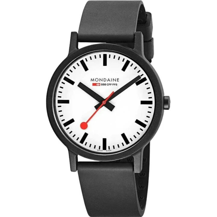 This modern classic presents itself in black and comes with a strap made out of natural rubber, which means this watch is completely vegan. Together with the iconic dial and its red second hand, it’s a real eye-catcher on every wrist. Thanks to the innovative strap system, the strap can be changed in seconds, which can give the watch a completely new look.