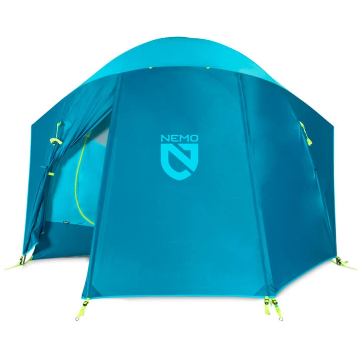 With a spacious standing-height design, simple setup and vibrant colors, the Aurora Highrise 4-Person adds a dose of joy to every family camping adventure. Steep sidewalls provide massive interior volume, while large rain-protected windows add ventilation and great views. Two large doors and vestibules offer easy entry and plenty of room for keeping camping essentials organized and out of the weather.