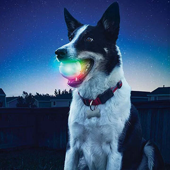 The GlowStreak LED Ball is the most technologically advanced nighttime fetch ball ever made and holds up to the best arm or ball launchers around. This robust rubber ball has a protected inner core that contains an advanced motion-activated LED module with color-changing Disc-O LEDs, and it turns on with a simple bounce. It also features an auto shut-off function after ten minutes without a bounce (five minutes of glow followed by five minutes of flashing), giving you or your dog time to find it if one of you becomes distracted.