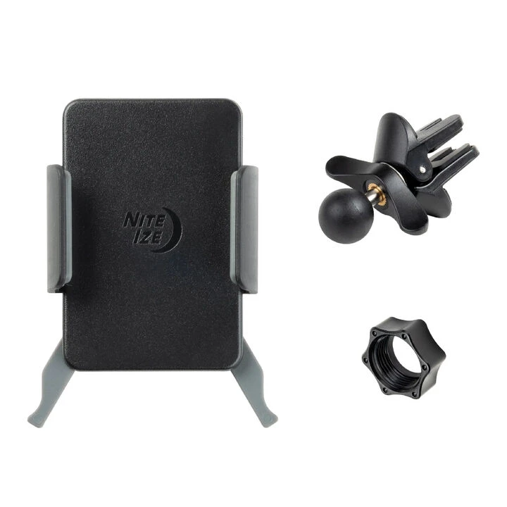 The included Tension Vent Mount tightens onto your vent with a few turns, securing onto a vent blade for a strong hold. The top of the Tension Vent Mount is a rounded ball joint, designed to connect to the socket back of the Squeeze Clamp in a snap. The included attachment collar links the Tension Vent Mount and Squeeze Clamp together, allowing you to adjust the Squeeze Clamp to your perfect viewing angle and tighten it in place.