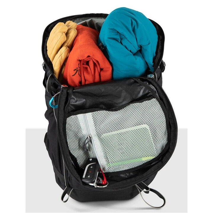 - Internal hydration sleeve with included Hydraulics LT 2.5 L reservoir, hose port and Osprey® Hydraclip for easy reservoir hanging