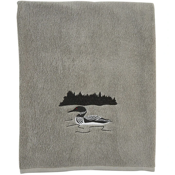 A serene loon swims across the water on the Grey Area Loon Bath Towel. It’s the perfect addition to your bathroom at the lake house.