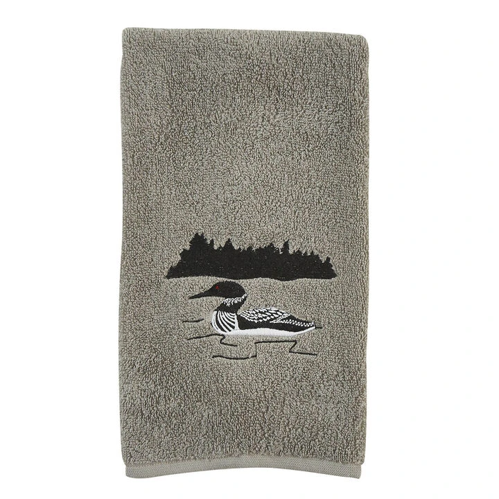 A serene loon swims across the water on the Grey Area Loon Hand Towel. It’s the perfect addition to your bathroom at the lake house.