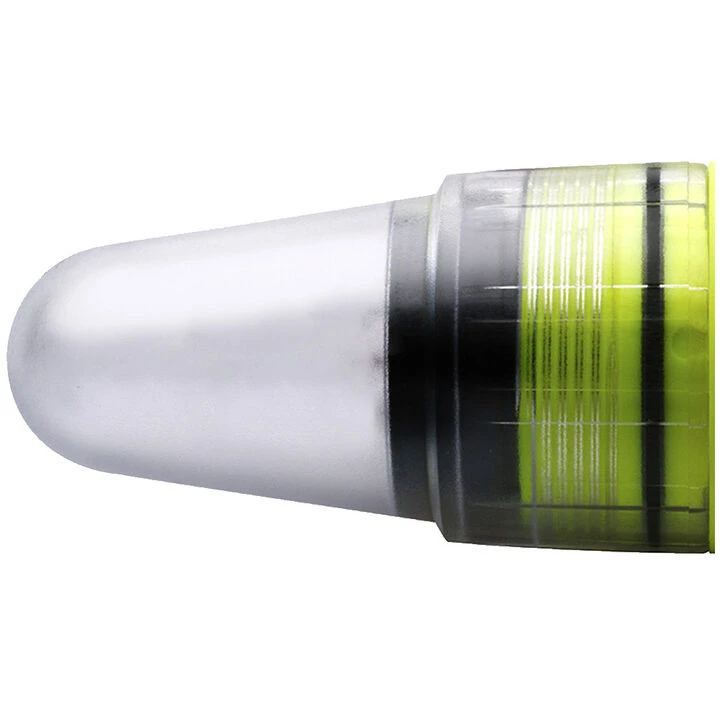 A single AA battery fuels the strobe. Simple twist operation turns the Aqua Strobe LED on and also helps to prevent accidental activation and produces 60 flashes per minute. A buoyant cone keeps the light pointed up whether found underwater or at the surface.