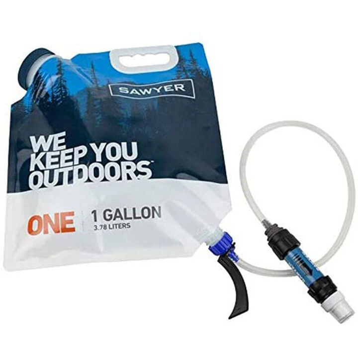 Sawyer’s lightest and most versatile personal water filtration system, the Mini weighs just 2 ounces, fits in the palm of your hand, and is rated to 0.1 micron absolute filtration – removing 99.99999% of all bacteria, such as salmonella, cholera and E.coli, removing 99.9999% of all protozoa (such as giardia and cryptosporidium), and removing 100% of microplastics. And weighing 4.5 ounces, the 1-gallon bladder features a wide mouth cap that allows for fast filling and a convenient carry handle.