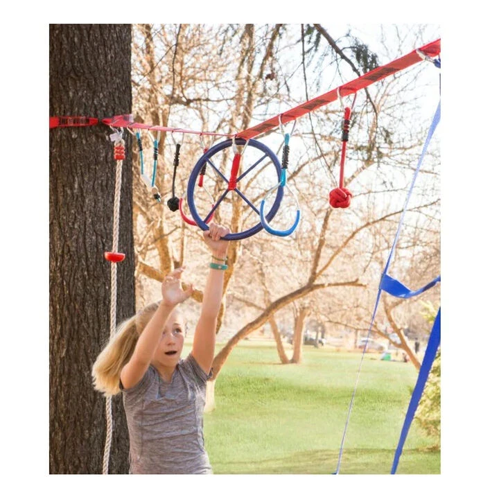 Take your ninja training to the next level with the Ninja Wheel! This powder coated blue steel ring creates a dynamic obstacle to add to your Slackers® Ninjaline™.
