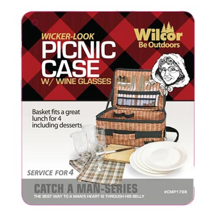 Treat yourself to a picnic lunch with Wilcor’s® wicker-look picnic case.